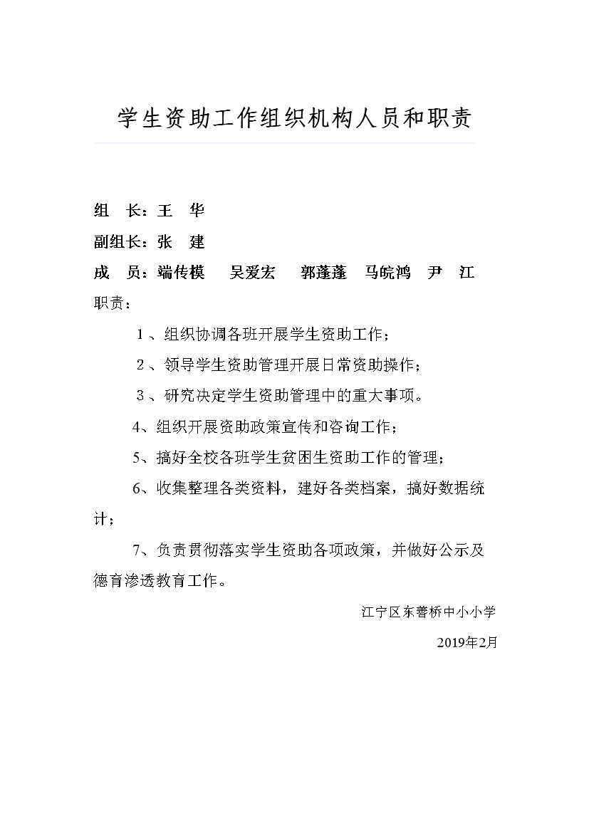 东善桥小学学生资助管理机构及职责